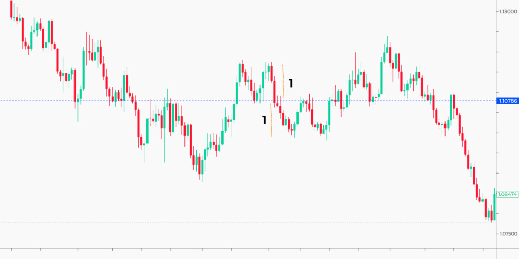 The chart below depicts a long-term uptrend. EUR/USD fell below the lower band of the upward channel (support). It could be a fakeout as the pair rebounded from the support level (1). However, several days later, it broke below this level (2), and the uptrend ended.