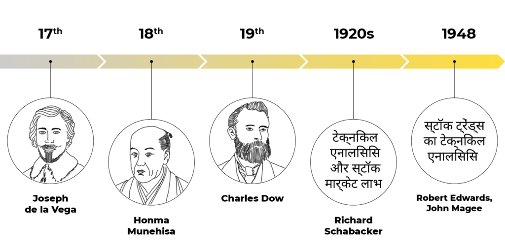 - 19वीं शताब्दी में चार्ल्स डॉव ने «डॉव थ्योरी” का निर्माण किया जो आधुनिक टीए के लिए आधार बन गया;