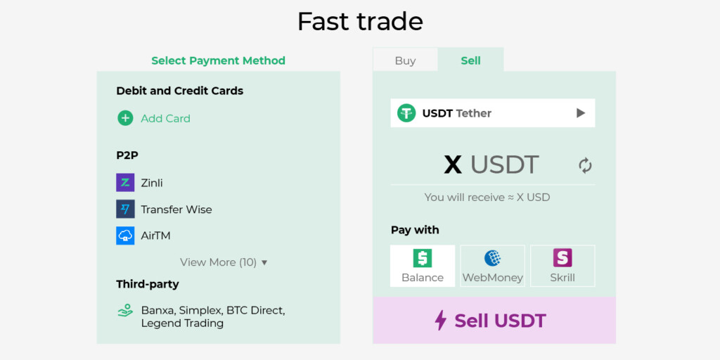 Catatan. Melalui pertukaran, Anda dapat mengonversi dan menjual crypto untuk mendapatkan fiat. Pertukaran P2P memungkinkan penjualan crypto langsung ke pembeli.
