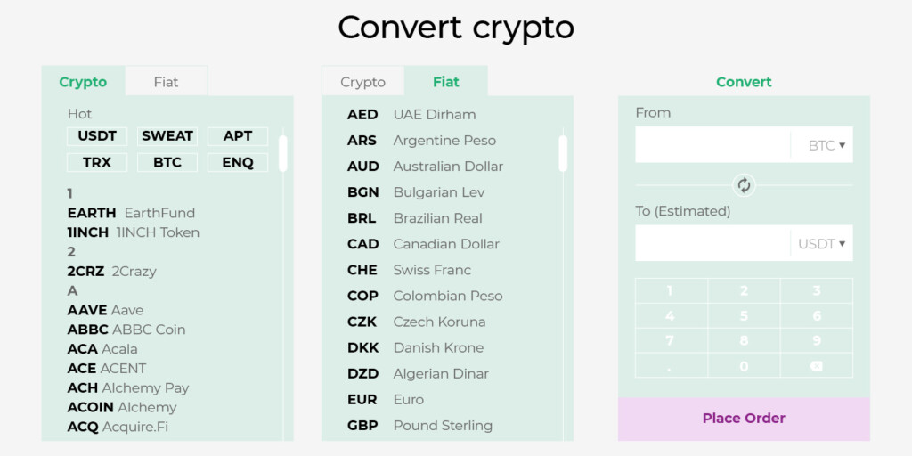 2. Anda juga dapat mengonversi satu crypto menjadi crypto lainnya melalui pertukaran.