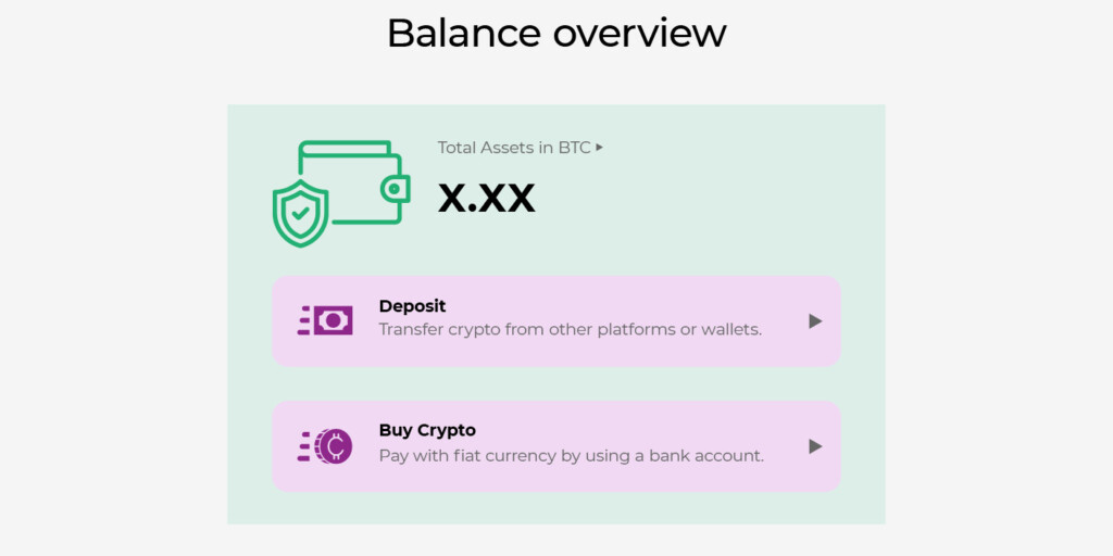 1. Setor dengan fiat Anda (USD, euro, dll.) melalui kartu bank atau metode pembayaran lainnya dan beli mata uang crypto.