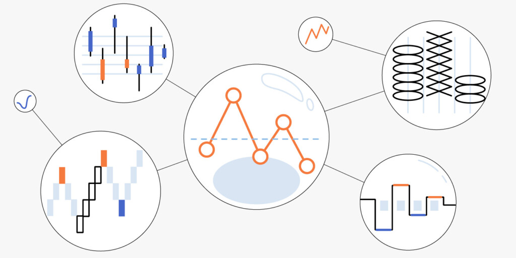 - Indikator volatilitas. Alat-alat ini menunjukkan tingkat fluktuasi harga.