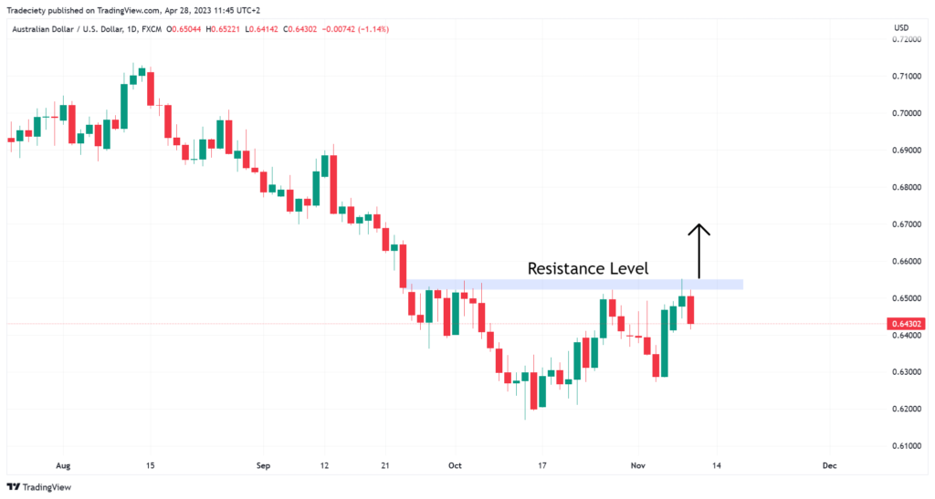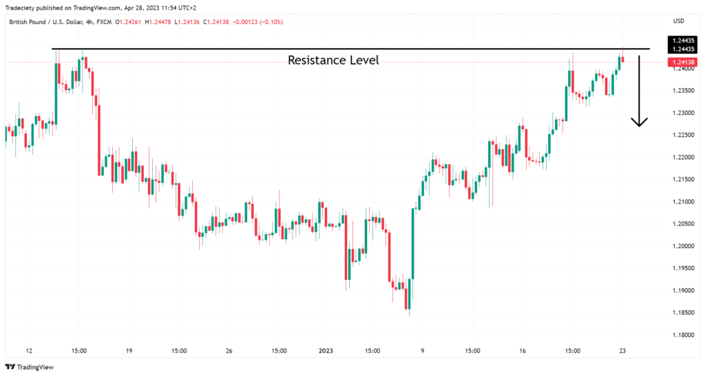 Jika harga tetap berada di bawah garis resistance dalam jangka waktu yang lebih lama dan sebuah pola terbentuk dalam jangka waktu yang lebih pendek (menunjukkan potensi penurunan harga), Anda mungkin ingin mempertimbangkan untuk menjual aset tersebut.