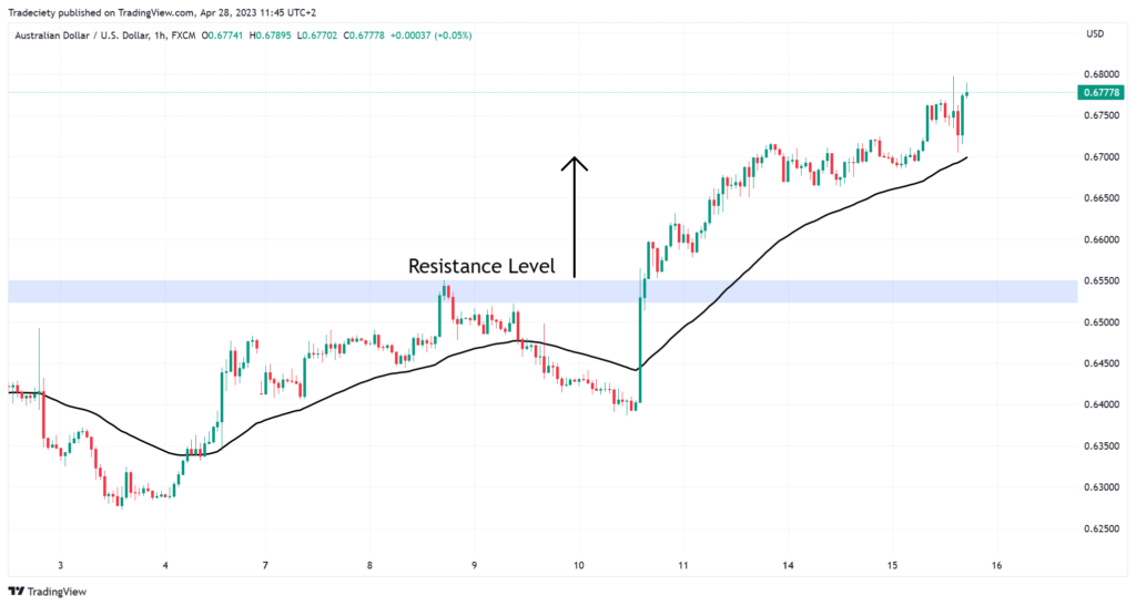 Salah satu strategi multi-frame adalah breakout, yang menggunakan level support dan resistance dari timeframe yang lebih tinggi. Level ini dapat menyebabkan pemantulan atau penembusan ambang batas horizontal jangka panjang.