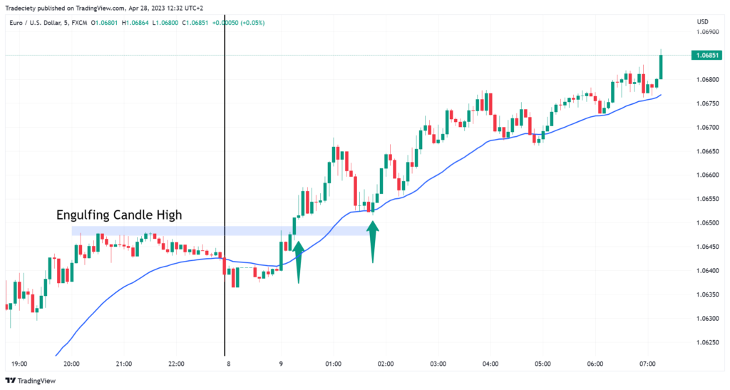 Pertimbangkan tren bullish yang kuat pada EUR/USD. Saat pasar sedang tren naik, Anda akan mencari peluang untuk membeli dengan harga terbaik.