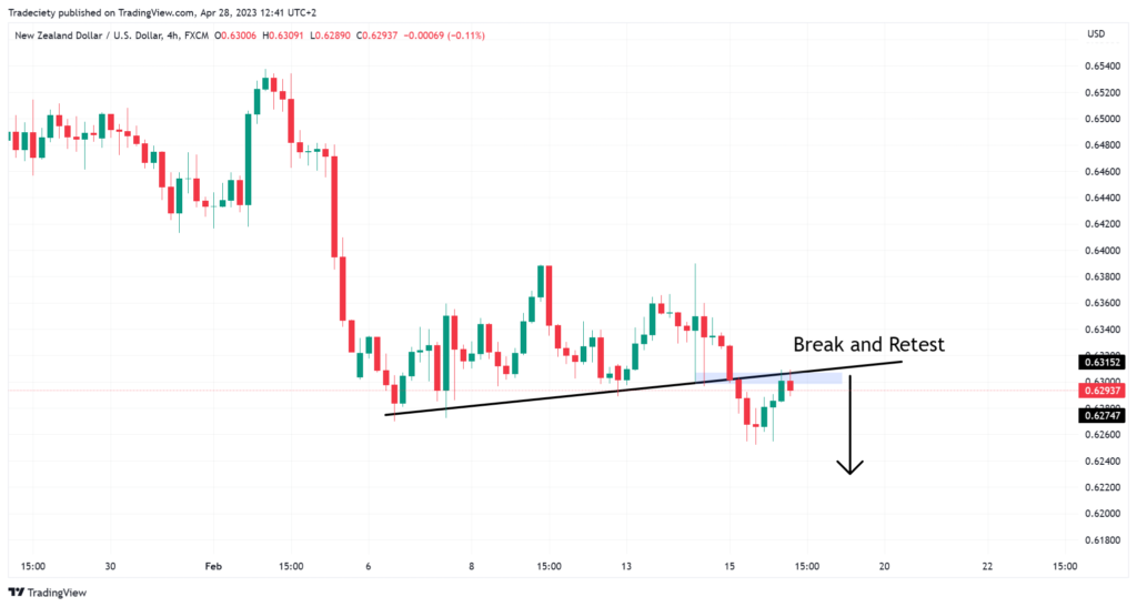 Anda juga dapat menggunakan pola grafik yang kompleks untuk memandu keputusan trading Anda pada jangka waktu yang lebih tinggi. Misalnya, jika ada tren bearish pada jangka waktu 4 jam yang lebih tinggi dan Anda melihat pola yang tampak seperti bendera menyamping dengan garis tren, itu adalah sebuah sinyal.