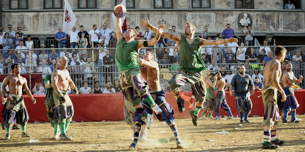Calcio Storico Fiorentino bukanlah event yang dapat Anda nikmati dengan menontonnya di saluran TV olahraga. Acara ini merupakan kombinasi dari sepak bola, rugby, dan gulat besar yang berasal dari Florence abad ke-16. Ada tim yang mewakili lingkungan bersejarah kota, dan semua pemain mengenakan kostum bersejarah.