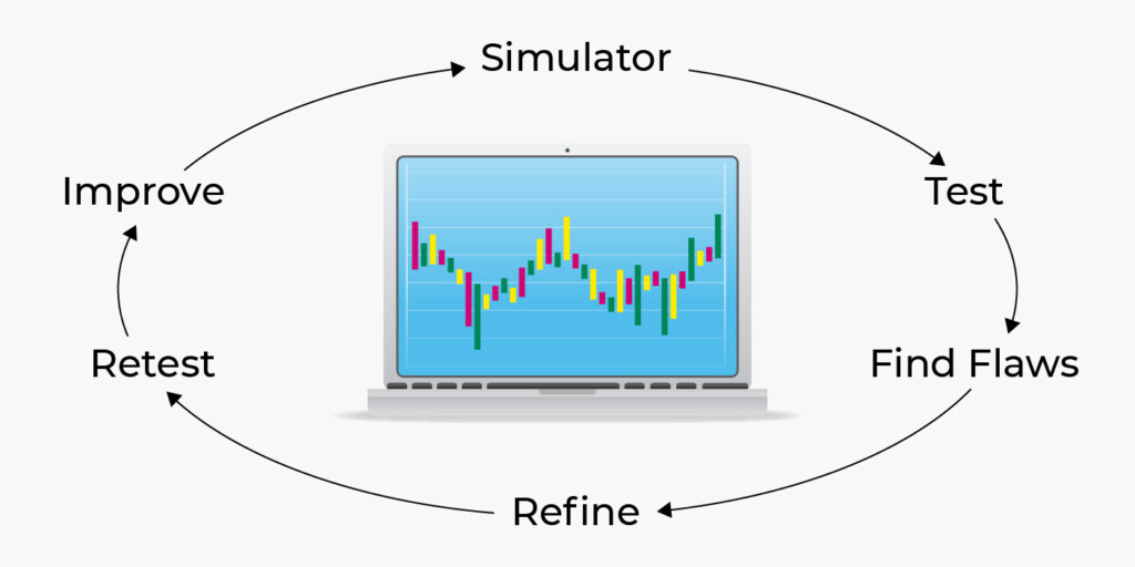 Pedagang tahun pertama disarankan menggunakan simulator perdagangan untuk menguji kemampuan perdagangannya hingga cukup percaya diri untuk berdagang secara nyata. Inti dari simulator perdagangan adalah untuk membantu Anda membangun pengalaman perdagangan seiring menguasai keahlian Anda. Namun, hasil pada simulator perdagangan berbeda dengan berdagang di dunia nyata. Simulator perdagangan adalah sebuah pilihan yang tepat bagi para pemula yang membutuhkan bantuan untuk memahami dasar-dasar indikator perdagangan dan ingin melenturkan otot-otot mereka pada strategi perdagangan yang baru.