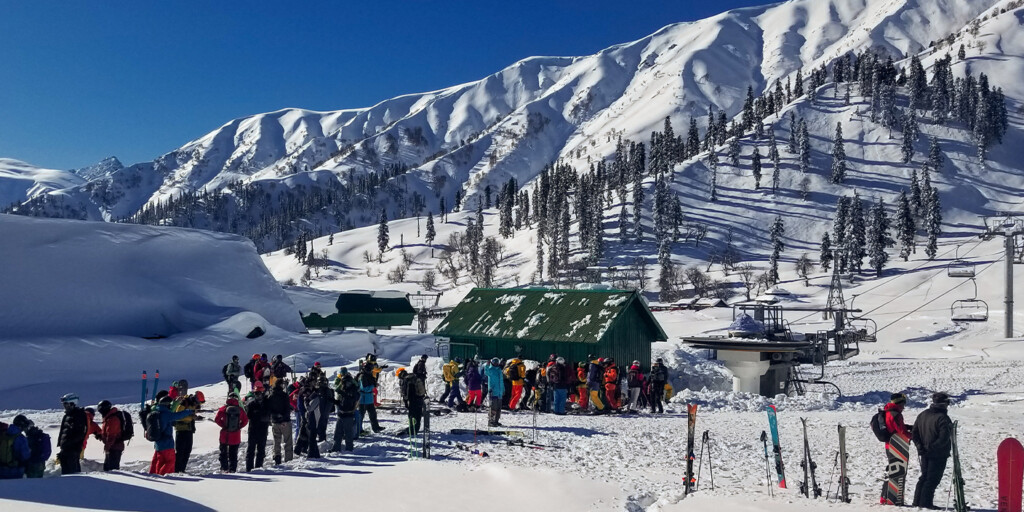 A cidade-estação de Gulmarg é o lugar para passeios suaves e de baixo risco, com esqui e snowboard espalhados por todo lado. Mas aqui está a grande atração: esquiadores avançados podem pegar um dos helicópteros AS350B3e (nenhum registro acidental ou incidental em 11 anos) e viajar para montanhas de grande altitude.