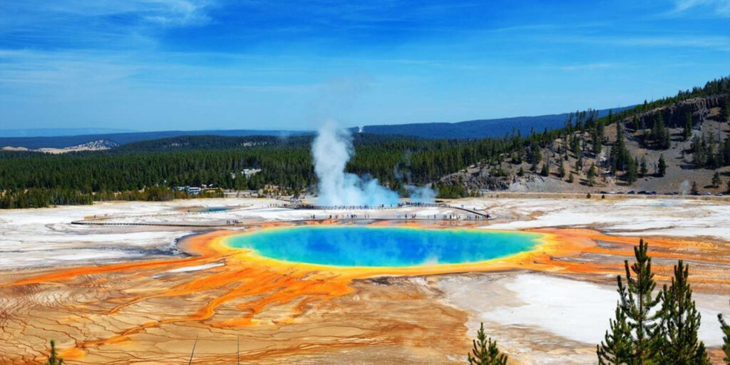 Localizado principalmente no estado americano de Wyoming, o Parque Nacional de Yellowstone abriga uma vasta gama de características geotérmicas, incluindo gêiseres, fontes termais e poças de lama, bem como uma fauna diversificada, incluindo lobos, ursos, bisões e alces. Existem vários passeios panorâmicos, trilhas para caminhadas e áreas de camping, oferecendo aos viajantes a oportunidade de vivenciar a natureza e explorar as diversas paisagens do parque.