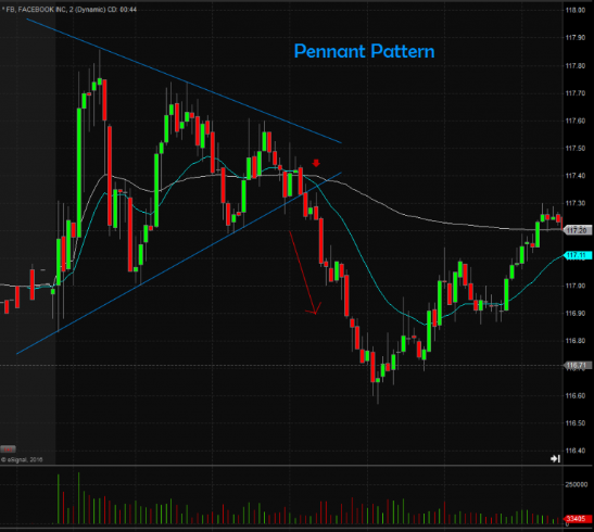 As bandeiras têm padrões convergentes ao longo de sua fase de consolidação, com duração de cerca de uma a três semanas. O movimento inicial deve ser combinado com um volume enorme, seguido por um aumento significativo durante um rompimento. A imagem abaixo mostra como é uma bandeira.