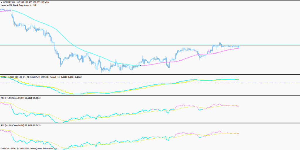 Você pode procurar o cruzamento de diferentes MAs ou a interação do preço com a linha MA como possíveis sinais de negociação.