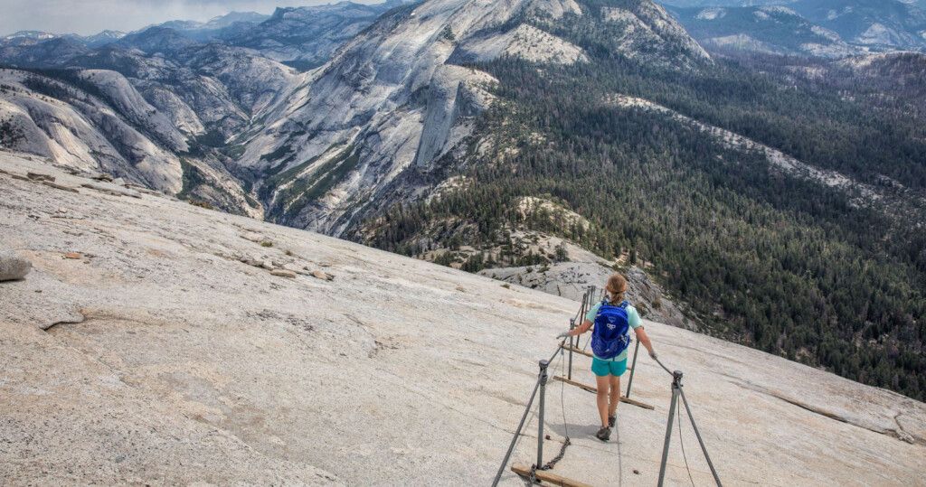 Half Dome Trail é uma trilha de caminhada popular localizada no Parque Nacional de Yosemite, Califórnia, EUA. A trilha tem aproximadamente 22-26 km (14-16 milhas) de ida e volta e leva em média 12-14 horas para ser concluída. A Half Dome Trail começa no início da trilha Happy Isles no vale de Yosemite e passa por belas paisagens, incluindo florestas, cachoeiras e penhascos de granito, antes de chegar ao ponto alto da trilha: Half Dome, uma cúpula de granito que se eleva sobre o fundo do vale.
