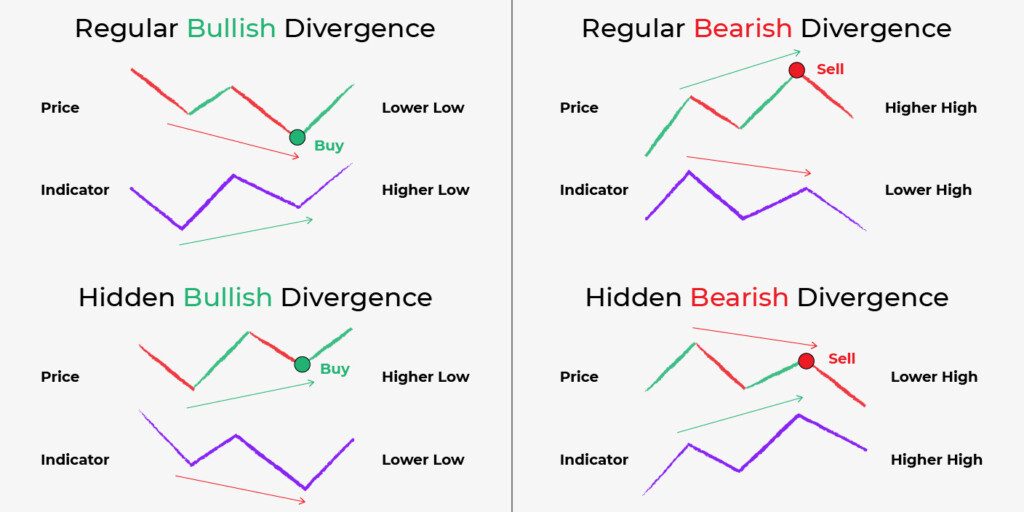 - Divergência. Existem quatro tipos de divergência. Você pode examiná-los no gráfico abaixo (3).