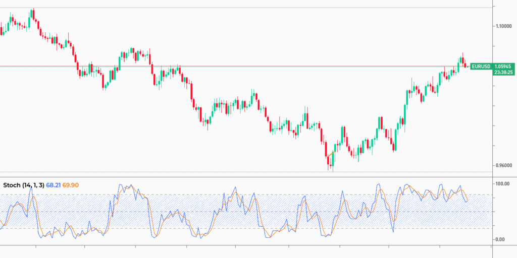 Como o RSI, o oscilador estocástico reflete as condições nas quais o preço de um ativo é muito alto ou muito baixo. Os níveis-chave do estocástico são 20 e 80. Quando o oscilador está abaixo de 20, um ativo está sobrevendido e o preço pode subir em breve. Quando o oscilador está acima de 80, o preço pode cair rapidamente à medida que um ativo é sobrecomprado.