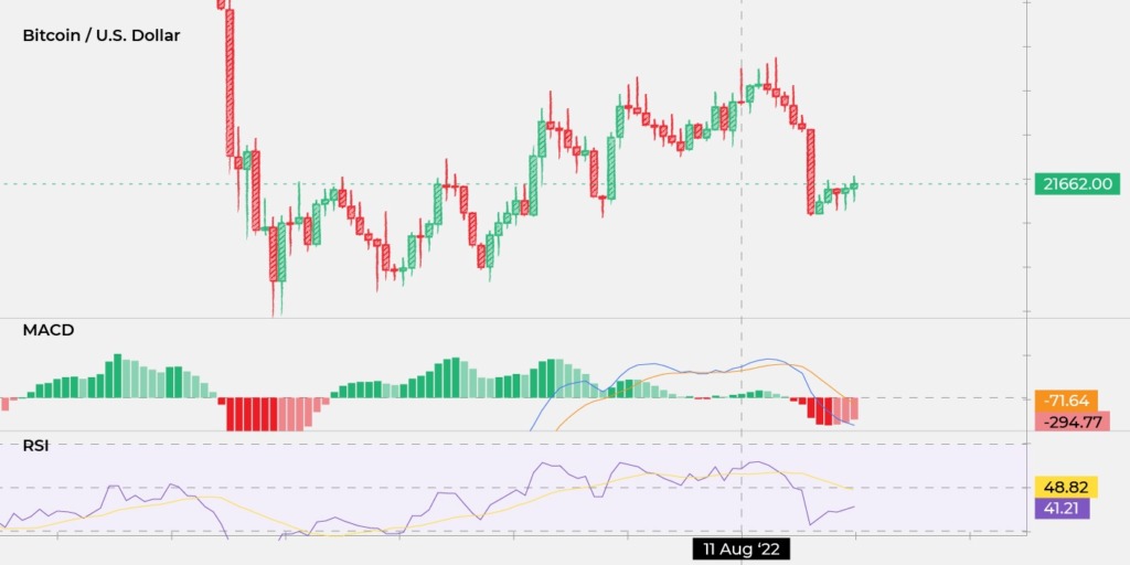 No entanto, se você observar os indicadores MACD ou RSI, notará que o MACD e o RSI estavam negociando acima de suas linhas de sinal naquele momento. Assim, não houve confirmação da queda de preços.