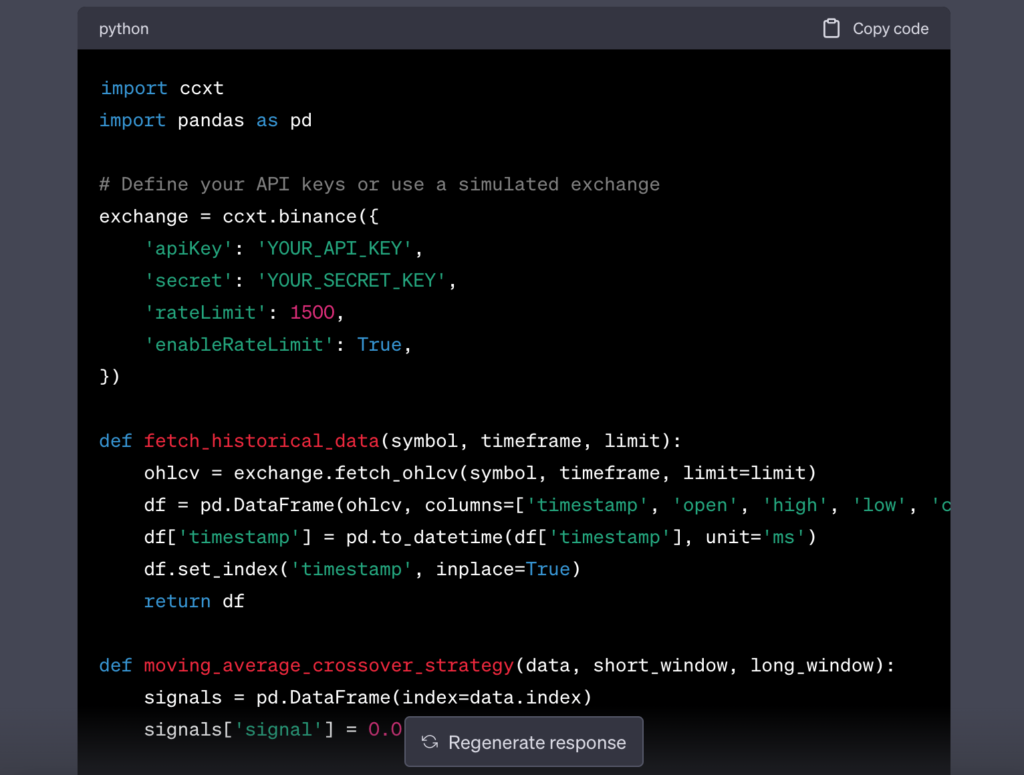 ChatGPT’nin sadece Eylül 2021’den önceki bilgiler temelinde cevaplar üretmesi oldukça önemlidir. Gerçek zamanlı piyasa verilerine, son gelişmelere ve olaylara erişimi olmaması, geriye dönük testlemenin doğruluğunu ve stratejilerin etkinliğini ciddi şekilde tehlikeye atar.